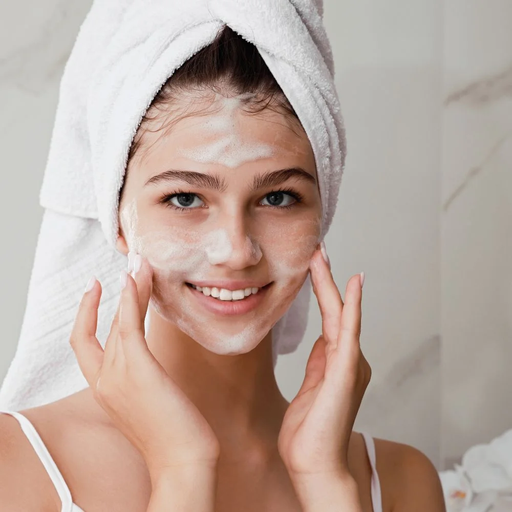 נקי את הפנים שלך בעדינות עם תכשיר ניקוי מתאים כדי להסיר לכלוך ושאריות איפור ולהבטיח שהעור יבש לחלוטין.